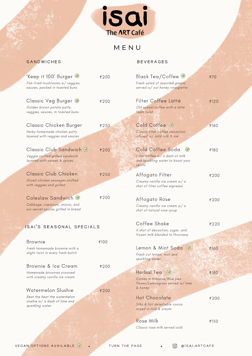ISAI - The Art Café Menu
